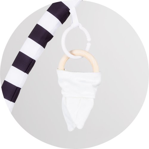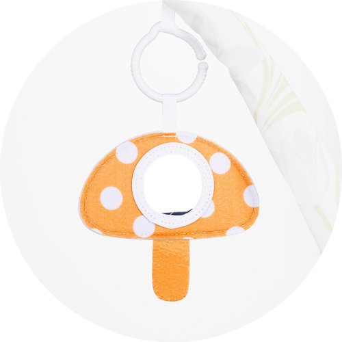 Mäkká plyšová tkanina s rozdielnou textúrou, dva oblúky s piatimi závesnými hračkami, hračky je možné ľahko odopnúť a podľa potreby vyprať, prídavná polstrovaná časť zaisťuje bezpečie dieťaťa, podložku a hračky je možné prať ručne pri max teplote 30 ° C, hračka bola vyrobená v súlade s požiadavkami európskych smerníc a noriem týkajúcich sa bezpečnosti.