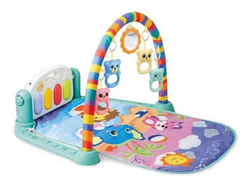 Jemná antialergénna látka s rozdielnymi povrchmi, súčasťou je závesný oblúk s rôznymi hračkami, hračky je možné odopnúť a očistiť, piánko so svetlami stimuluje zmysly dieťaťa, látkové časti je možné prať ručne pri 30 °C.