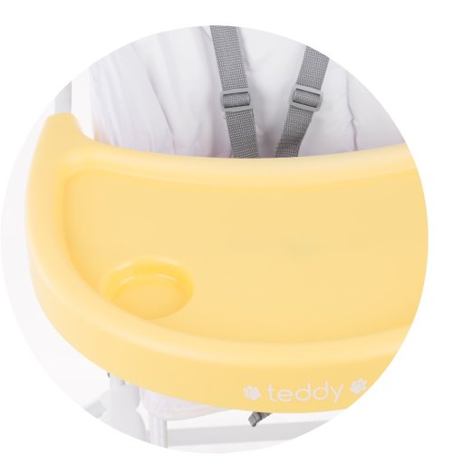 Skladacia jedálenská stolička TEDDY s jemnými vzormi má priestranný pultík na jedlo a široké a pohodlné sedadlo. Vlastnosti: