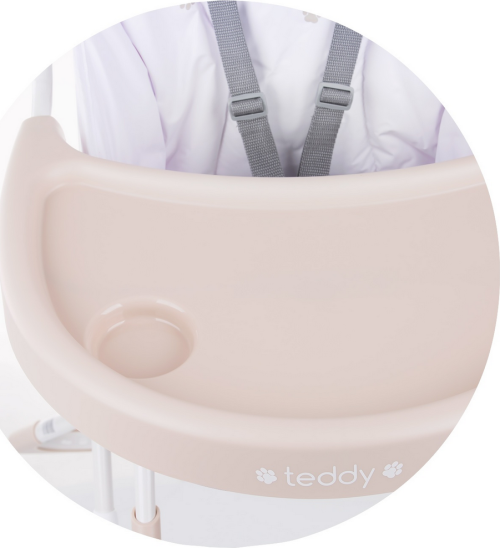 Skladacia jedálenská stolička TEDDY s jemnými vzormi má priestranný pultík na jedlo a široké a pohodlné sedadlo. Vlastnosti: