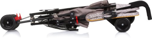 ľahký klasický rám, ľahké a kompaktné skladanie, zadné kolesá s prepojenou brzdou, 5 bodové bezpečnostné pásy s polstrovaním, skladacia strieška, pohodlné rukoväte potiahnuté vysoko kvalitným materiálom, priestranný úložný kôš.