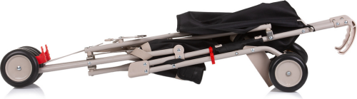 ľahký klasický rám, ľahké a kompaktné skladanie, zadné kolesá s článkovou brzdou, 5-bodové bezpečnostné pásy s polstrovaním, skladacia strieška, pohodlné rukoväte potiahnuté vysoko kvalitným materiálom.