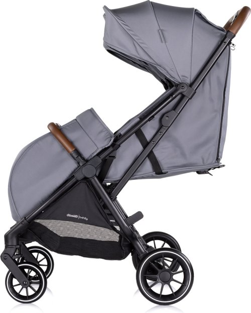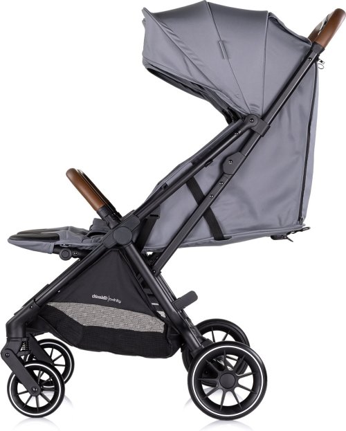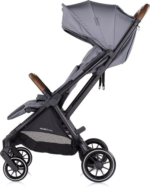 ľahký hliníkový rám, 3D automatické skladanie jednou rukou, nastaviteľné a polohovateľné operadlo, odnímateľné predné madlo s poťahom z eko kože, 5-bodový bezpečnostný pás s mäkkýmramenným polstrovaním nastaviteľná strieška s priehľadovým okienkom a slnečnou clonou, nastaviteľná opierka nôh, sieťovaná časť na zadnej strane kôš, kolesá sú ľahko odnímateľné s odpružením, brzda na zadných kolesách, polstrovaný nánožník, taška na príslušenstvo - praktické vrecká a prebaľovacia podložka, držiak na nápoj.