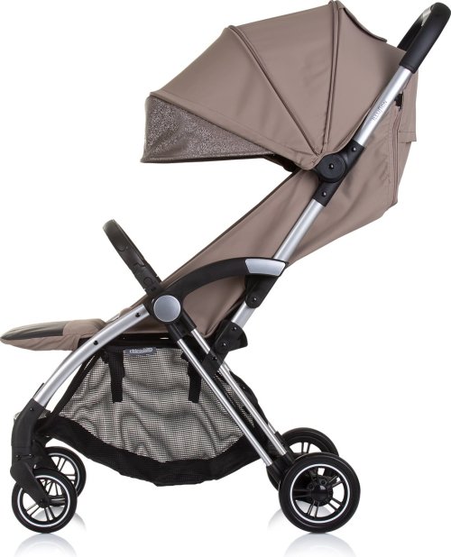 stabilný moderný rám, 3D automatické skladanie jednou rukou, 3 polohy sklonu chrbtovej opierky nastaviteľné mechanizmom, odnímateľný predné madlo, 5bodový bezpečnostný pás s mäkkými ramennými vypchávkami, veľká strieška s ventilačnou časťou a vreckom na doplnky, nastaviteľná opierka nôh, pohodlná rukoväť rýchlo odnímateľná as odpružením, zadné kolesá s prepojenou brzdou