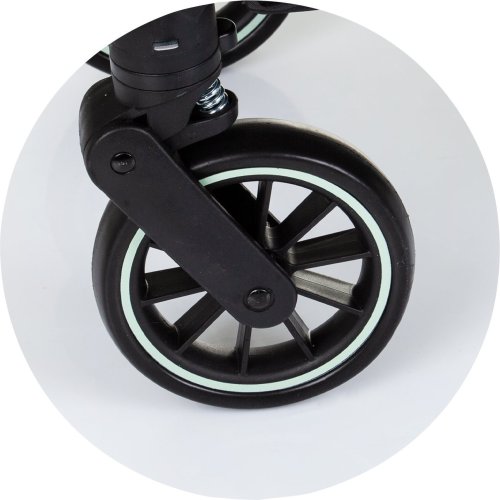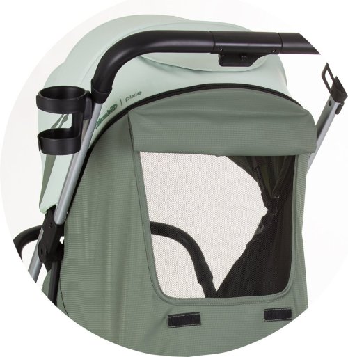 ľahký rám ľahké a kompaktné skladanie jednou rukou vysúvacia rukoväť pre premiestnenie zloženého kočíka (ako pri kufri viď obr. a video) rýchloupínacie odpružené kolesá zadné kolesá s článkovou brzdou 5 bodové bezpečnostné pásy s polstrovaním nastaviteľná opierka chrbta nastaviteľná opierka so sieťovaným priehľadom, slnečnou clonou a vreckom na príslušenstvo sieťovanie pre lepšiu cirkuláciu vzduchu pohodlná rukoväť potiahnutá vysoko kvalitným materiálom odnímateľné detské madlo držiak na nápoje veľký úložný kôš