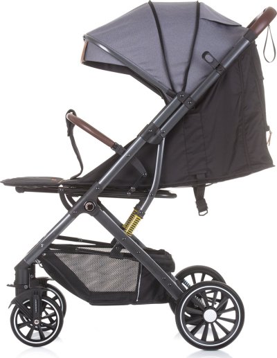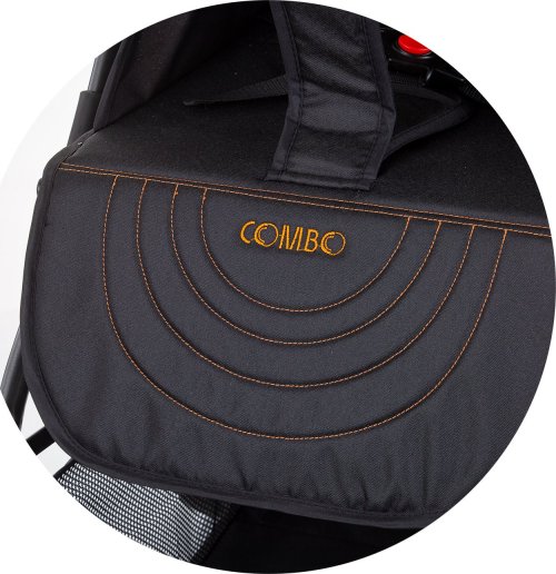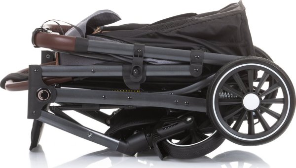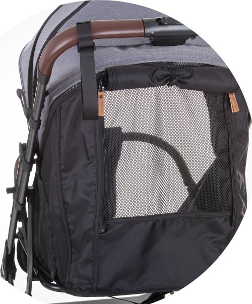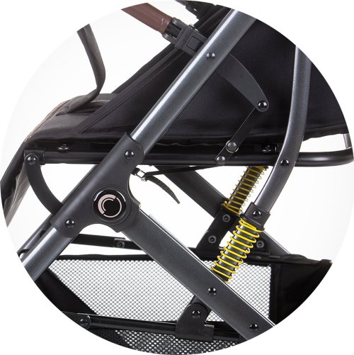 klasický pevný rám ľahké a kompaktné skladanie jednou rukou odpružené rýchloupínacie kolesá zadné kolesá s článkovou brzdou 5 bodové bezpečnostné pásy s polstrovaním nastaviteľná opierka chrbta nastaviteľná opierka nôh nastaviteľná a predĺžiteľná strieška s priehľadom, slnečnou clonou a vreckom na príslušenstvo sieťovanie v zadnej časti nánožník moskyti madlo potiahnuté ekokožou pohodlná rukoväť potiahnutá vysoko kvalitnou ručne prešívanou ekokožou bezpečnostný pásik na rukoväti priestranný úložný kôš