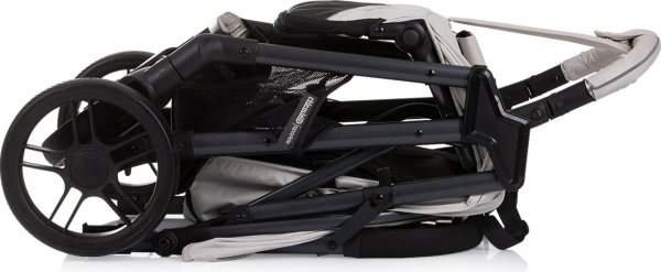 klasický pevný rám, jednoduché a kompaktné skladanie jednou rukou, všetky kolesá sú rýchlo odnímateľné a odpružené, zadné kolesá s článkovou brzdou, 5 bodové bezpečnostné pásy s polstrovaním, nastaviteľná opierka chrbta do niekoľkých polôh, nastaviteľná opierka nôh, nastaviteľná veľká strieška so sieťovaným priehľadom, slnečnou clonou a vreckom madlo, pohodlná rukoväť, veľký úložný kôš.