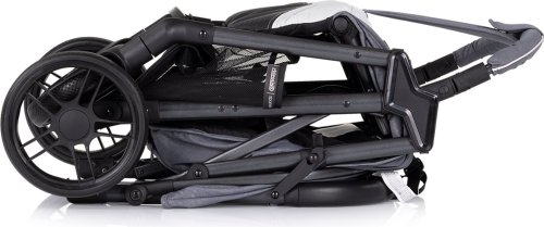 klasický pevný rám, jednoduché a kompaktné skladanie jednou rukou, všetky kolesá sú rýchlo odnímateľné a odpružené, zadné kolesá s článkovou brzdou, 5 bodové bezpečnostné pásy s polstrovaním, nastaviteľná opierka chrbta do niekoľkých polôh, nastaviteľná opierka nôh, nastaviteľná veľká strieška so sieťovaným priehľadom, slnečnou clonou a vreckom madlo, pohodlná rukoväť, veľký úložný kôš.
