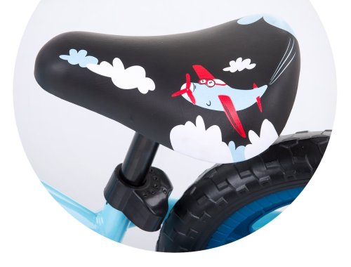 veľmi ľahký rám 12" kolesá s plnými pneumatikami z peny EVA tlmiace nárazy výškovo nastaviteľné sedadlo 30-35 cm nastaviteľné riadidlá 62-57 cm protišmykové koncovky rútidiel (gripy)