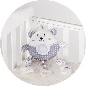 15 melódií a piesní, vstavané svetelné efekty, kompaktné - vhodná pre kočík aj postieľku, jednoduché ovládanie dvoma tlačidlami, pre prevádzku sú potrebné 2ks batérie typu AAA (nie sú súčasťou balenia).