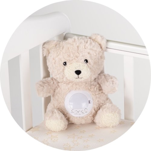 10 jemných uspávaniek, 3 projekčné kryty: hviezdna obloha, oceán a nočná lampička, 7 režimov svetla, 6 druhov bieleho šumu pre ľahšie zaspávanie, senzor plače – automatické utíšenie dieťaťa, dobíjanie cez USB Type-C.