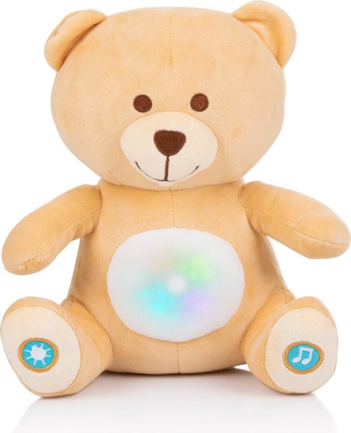 Prehráva 3 uspávanky. Nočná lampička zabudovaná v bruchu zvieratka svieti v rôznych farbách. Vďaka pásikom na suchý zips na zadnej strane hračky ju možno pripevniť k detskej postieľke, posteli, ohrádke, kočíku, hojdačke, vysokej stoličke. Vyrobené z vysoko kvalitného plyšu - veľmi mäkký a jemný. Balené v darčekovej krabičke.