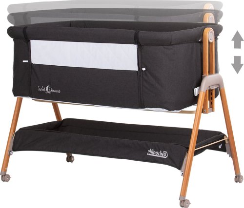 slúži ako prístelka, samostatná postieľka, ako cestovná postieľka, ľahký hliníkový rám, vonkajší poťah z mäkkého plátna, režim spoločného spánku – upevnenie k posteli rodičov, dlhá strana umožňuje rodičovi stály prístup k dieťaťu; výškovo nastaviteľná do 5 úrovní + antirefluxná poloha, mäkký a pohodlný matrac (je súčasťou balenia), polstrované a ľahko odnímateľné čalúnenie; vzdušná sieť po stranách zaisťuje správnu cirkuláciu vzduchu, kolieska pre ľahké premiestňovanie, upevňovacie pásy na pripevnenie postieľky k posteli rodičov, úložný priestor v spodnej časti postieľky, ľahké a kompaktné skladanie na uskladnenie.