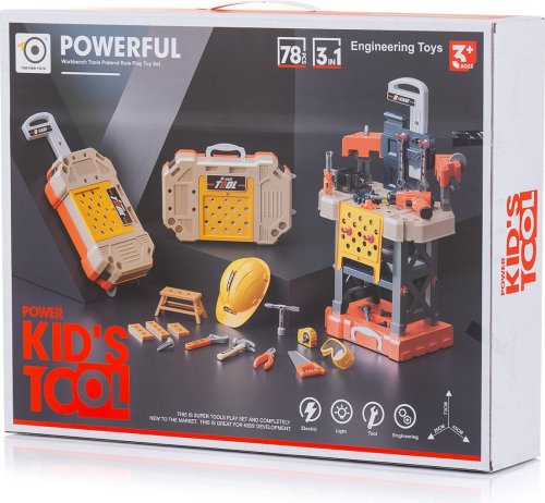 obsahuje 78ks, príručný kufrík sa premení na pracovný stôl alebo na kufrík na kolieskach, interaktívna hračka so svetelnými efektmi, pre prevádzku sú potrebné batérie: 2ks AA (nie sú súčasťou balenia), rozmery výrobku (v zloženom stave): 73 x 43 x 26 cm , vhodné pre deti od 3 rokov.