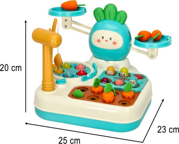 obsahuje štyri rôzne aktivity, stimuluje logické myslenie, pozornosť a trpezlivosť. rozvíja jemnú motoriku a zlepšuje logické myslenie, pestré farby a rozmanité textúry priťahujú pozornosť dieťaťa, deti môžu pri hre experimentovať so závažiami a učiť sa základným fyzikálnym princípom, priložený rybársky prút umožňuje deťom precvičovať koordináciu a motoriku. a stavať rôzne konštrukcie.
