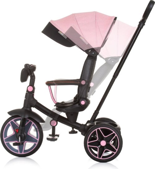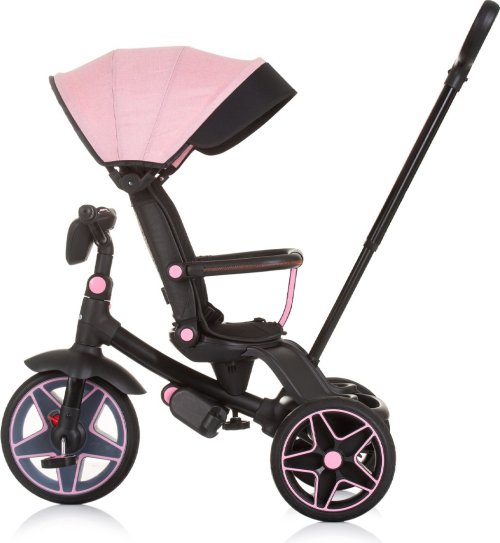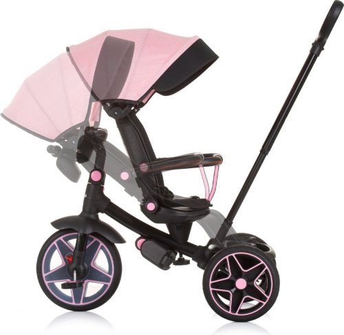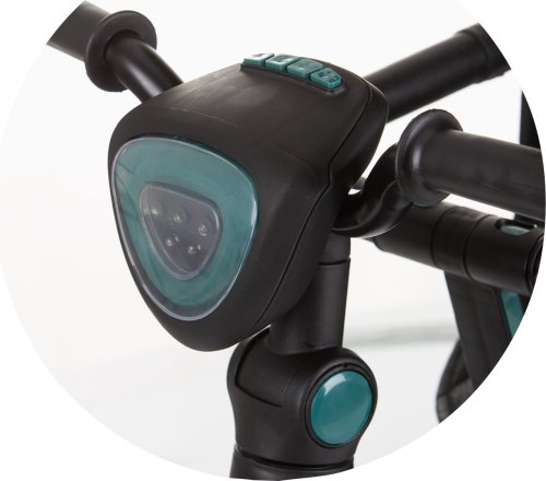 multifunkčný výrobok 2v1 sa rýchlo zmení na trojkolku pre samostatne jazdiace deti, vhodné pre deti od 1,5 roka do max hmotnosti 25 kg, odobratím striešky, rodičovskej rukoväte a detského madla sa trojkolka prispôsobí pre väčšie dieťa, ak tlačí trojkolku dospelý a dieťa položí nohy na opierku nôh, je možné pedále predného kolesa deaktivovať (voľnobežný režim) , otočné sedadlo o 360 ° (v smere a proti smeru jazdy), kvalitné gumové kolesá s vynikajúcou nosnosťou a odolnosťou proti opotrebeniu, výškovo nastaviteľná a odnímateľná tlačná rukoväť pre rodičov, odnímateľná skladacia strieška so slnečnou clonou a látkou s ochrannou proti slnku FPS50+, hudobný box so svetlami na riadidlách (pre prevádzku je potrebné 3 ks 1,5 V batérie AA), široké a pohodlné sedadlo s mäkkým polstrovaným textilným poťahom, 5bodové bezpečnostné pásy s ramenným polstrovaním, odnímateľné bezpečnostné detské madlo s poťahom z ekokože, skladacia a pohyblivá opierka nôh, pohyblivé horné opierky nôh je možné používať v oboch smeroch, brzdové pedále na zadných kolesách, predné koleso s blatníkom a ochranným krytom proti zachyteniu detských nôh, úložný kôš vzadu (max zaťaženie ,5 kg).
