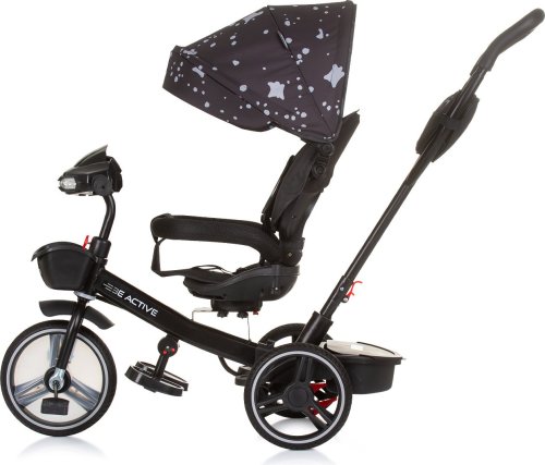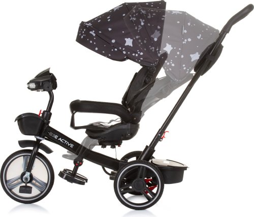 Multifunkčný výrobok s 2 rôznymi spôsobmi použitia - rodič tlačí dieťa alebo dieťa samo riadi a ide pomocou pedálov, strieška, rodičovská rukoväť a ochranné madlo sú odnímateľné, riadidlá s hudbou a svetlom - na prevádzku sú nutné 2ks 1,5V batériou АА, vysoko kvalitná gumová kolesá, otočné sedadlo o 360 ° - v smere alebo proti smeru jazdy, mäkké polstrovanie s textilným poťahom, odnímateľné bezpečnostné madlo, bezpečnostné pásy s mäkkými ramennými vypchávkami, 2 polohy naklonenia sedadla, pohodlná rodičovská rukoväť, skladacia a pohyblivá opierka nôh horné opierky nôh je možné používať v oboch smeroch, skladacia strieška so slnečnou clonou, úložný kôš vpredu a vzadu, nožné brzdy na zadných kolesách, kryt kolesa na prednom kolese, ktorý zabraňuje zachyteniu nôh dieťaťa, taška na príslušenstvo na vodiacej tyči.