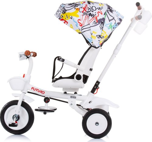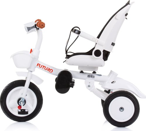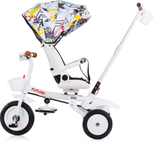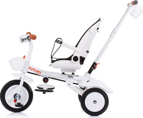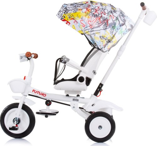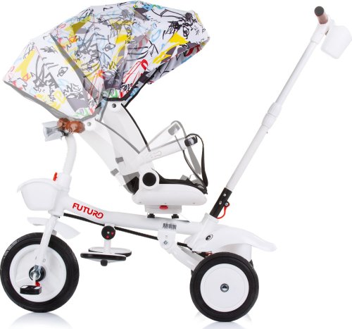 Multifunkčný výrobok Chipolino Trojkolka so strieškou Futuro s 2 rôznymi spôsobmi použitia - rodič tlačí dieťa alebo dieťa samo riadi hračku pomocou pedálov. Trojkolka sa stane skvelým spoločníkom, ktorý porastie spolu s dieťaťom.