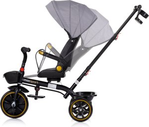multifunkčný výrobok s dvoma spôsobmi použitia – rodič tlačí dieťa alebo dieťa hračku poháňa samo pomocou pedálov, strieška, rukoväť pre rodičov a ochranný nárazník sú odnímateľné, takže sa trojkolka premení na vozítko pre väčšie dieťa, široké a pohodlné sedadlo s mäkkým textilným polstrovaním a bezpečnostným pásom, polohovateľné sedadlo, otočné sedadlo nárazníkom, pohodlná rodičovská rukoväť s nastaviteľnou výškou v dvoch polohách, držiak na fľašu, nápoj, ktorý je možné pripevniť na rukoväť v dvoch polohách, sklopná a pohyblivá opierka nôh, skladacia strieška so slnečnou clonou, úložný košík vpredu aj vzadu.