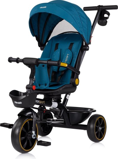multifunkčný výrobok s dvoma spôsobmi použitia – rodič tlačí dieťa alebo dieťa hračku poháňa samo pomocou pedálov, strieška, rukoväť pre rodičov a ochranný nárazník sú odnímateľné, takže sa trojkolka premení na vozítko pre väčšie dieťa, široké a pohodlné sedadlo s mäkkým textilným polstrovaním a bezpečnostným pásom, polohovateľné sedadlo, otočné sedadlo nárazníkom, pohodlná rodičovská rukoväť s nastaviteľnou výškou v dvoch polohách, držiak na fľašu, nápoj, ktorý je možné pripevniť na rukoväť v dvoch polohách, sklopná a pohyblivá opierka nôh, skladacia strieška so slnečnou clonou, úložný košík vpredu aj vzadu.