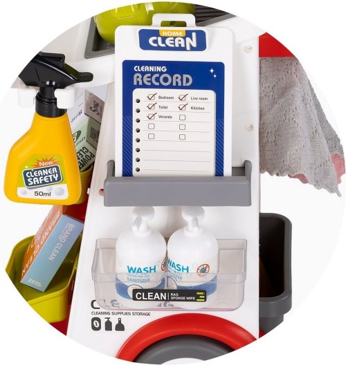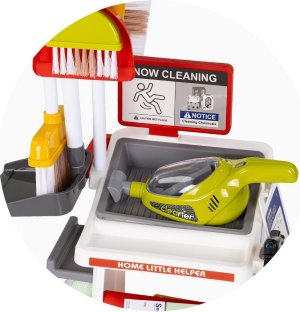 Chcete svoje dieťa povzbudiť k starostlivosti o domácnosť a udržiavanie čistoty, ale neviete, ako na to? Skvelým riešením bude vozík s upratovacím príslušenstvom. Už dávno sa vie, že neporiadok sa sám neupratuje, ale vozík túto prácu rozhodne spríjemní. Vlastnosti: