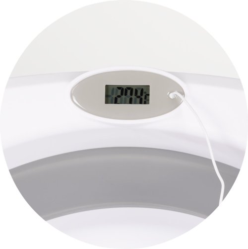 vhodná pre novorodencov i staršie deti, skladací dizajn, vstavaný teplomer, výpustný otvor, skladací kovový stojan zdvihne vaničku do pohodlnej výšky, chráni chrbát rodičov, kúpacia podložka poskytuje bábätku extra oporu a pohodlie, stabilná a bezpečná konštrukcia s protišmykovými prvkami a bezpečným uchytením, rozmery vaničky stojana: 65 x 43 x 81 cm, rozmery zloženého stojana: 74 x 8 x 94 cm.