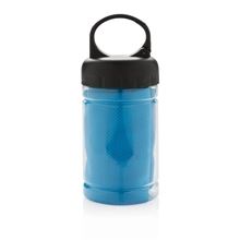 Uterák z mikrovlákna určený na osvieženie pri športe Jednoducho pridajte studenú vodu do fľaše, čím sa uterák ochladí a pri použití je príjemne osviežujúca Fľaša je vyrobená z PP s viečkom z ABS s karabínou.
