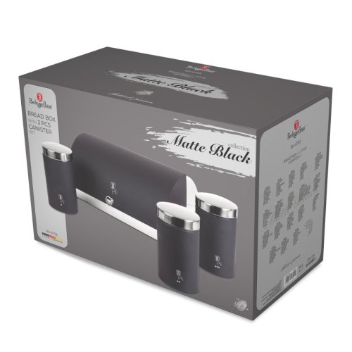 Tento elegantný set chlebníka a troch praktických dóz je ideálnym doplnkom pre modernú kuchyňu. Vysoká kvalita nerezovej ocele, štýlová matná čierna farba a sofistikovaný design vytvárajú perfektnú kombináciu estetiky a praktickosti. Set obsahuje chlebník, dózu na cukor, dózu na čaj a dózu na kávu - všetky vyrobené z kvalitnej nerezovej ocele a navrhnuté tak, aby poskytovali maximálny komfort pri každodennom používaní.