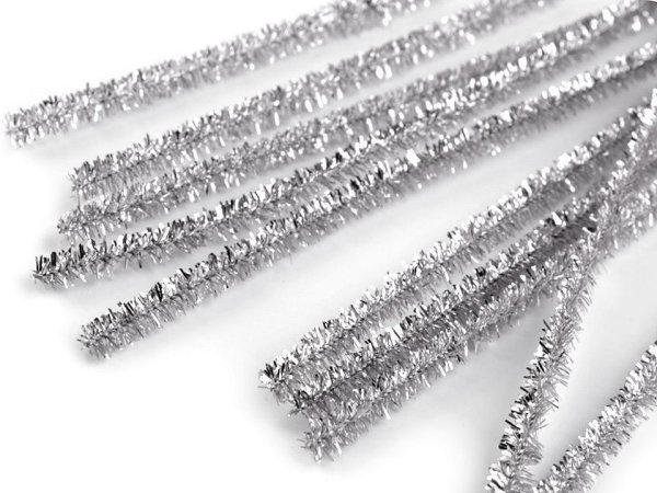 Chlupaté drátky na tvoření lurexové Ø6 mm délka 30 cm - stříbrná (10 ks)