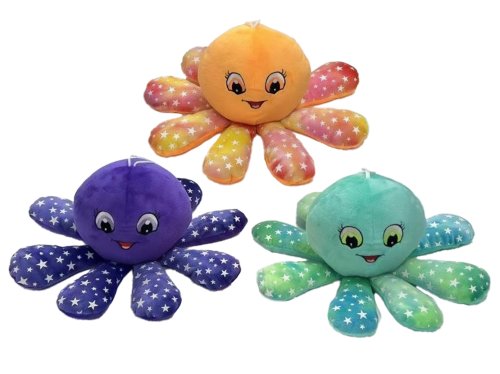 Chobotnička plyšová 10 cm svietiaca v tme - mix farieb (oranžová, fialová, zelená)