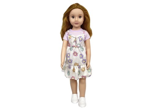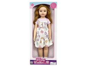 Chodiaca bábika v kvetinových šatách. Veľkosť 70 cm. Mrkacie oči.
