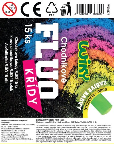 * Riziko spolknutí: Malé děti mohou vkládat křídy do úst, což hrozí udušením. Dohlížejte na dítě při hraní s křídami. * Alergie: Některé křídy obsahují látky, které mohou vyvolat alergické reakce. V případě výskytu alergií okamžitě přestaňte křídu používat. * Poškození povrchu: Používejte křídu na k tomu určených površích. Křída může trvale zašpinit nebo poškodit některé povrchy. * Ostré hrany: Zlomená křída může mít ostré hrany, které mohou způsobit poranění. Rozbité křídy vyhoďte do koše. * Udržování čistoty: Po použití si umyjte ruce a povrchy, na kterých byla křída používána. * Skladování: Křídy uchovávejte na suchém místě, mimo dosah malých dětí. * Použití: Křídy používejte podle jejich účelu (pro kreslení po tabulích, chodnících apod. ).