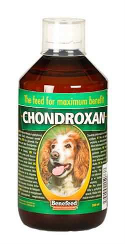 CHONDROXAN je kŕmny doplnok s jedinečným komplexom účinných látok slúžiacich na regeneráciu kĺbových chrupaviek, zmiernenie bolesti kĺbov, zlepšenie hybnosti a spomalenie ďalšieho poškodenia kĺbových chrupaviek. Tekutá forma prípravku je ďaleko účinnejšia ako tuhé aj práškové formy, pretože zaisťuje rýchlu vstrebateľnosť a maximálne využitie účinných látok. Glukosamín je prirodzenou zložkou kĺbovej chrupavky a kĺbového mazu. Stimuluje tvorbu novej chrupavky, pôsobí protizápalovo a chráni kĺby pred poškodením. Chondroitín je základnou zložkou medzibunkovej hmoty chrupavky. Jeho prítomnosť vedie k zlepšeniu mechanických a elastických vlastností. Viaže na seba vodu a tým udržuje chrupavku pevnú a pružnú. Spomaľuje, prípadne úplne zastaví postup degeneratívnych zmien postihnutej chrupavky. MSM napomáha regenerácii chrupaviek, šliach, ale aj kostí a svalov. Obsahuje ľahko využiteľnú síru dôležitú pre tvorbu kolagénu. Eliminuje vplyv toxických splodín (kyseliny mliečnej) v anaeróbnom procese výroby energie. Podieľa sa na regenerácii a výžive kĺbovej chrupavky, má protizápalový účinok a pomáha tiež odstraňovať opuchy. Vysoká účinnosť prípravku je daná špeciálnou technológiou výroby, kedy sú aktívne látky obdukciou chránené pred degradáciou v žalúdku a zažívacom trakte. Tento ochranný obal je postupne odbúravaný, až dôjde k úplnému uvoľneniu aktívnej látky v organizme v jej maximálnej účinnosti. Zloženie: Glukosamín sulfát, chondroitín sulfát (zo žraločích chrupaviek), Methylsulfonilmetán (MSM), L-karnitín, umelé sladidlo, prírodné látky, upravená pitná voda Dávkovanie: Podáva sa do napájacej vody alebo na pevnú zložku krm na 1 kg telesnej hmotnosti. Prvých 6 dní sa podáva dvojnásobná dávka a potom sa znižuje na predpísanú dávku. Podáva sa spravidla po dobu 3 mesiacov. Aplikáciu je vhodné opakovať 1-3 x ročne podľa potreby. Prípravok je horkastej chuti, je preto možné dennú dávku rozdeliť na 2-3 aplikácie počas dňa. Skladovať v suchom a temnom prostredí v pôvodných uzavretých obaloch.