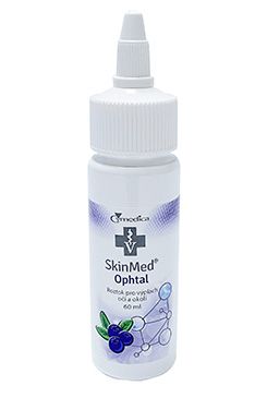 Veterinárny prípravok na vyplachovanie a čistenie svrbivých a podráždených očí, očného okolia a povrchových rán oka s extraktom z čučoriedok. (fľaštička s kvapkadlom)SkinMed Ophtal je superoxidovaný, pH neutrálny roztok s extraktom z čučoriedok.
