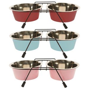 Dvojitá nerezová miska v praktickom stojane.