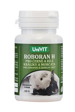 Doplnok špecificky účinných látok, určený pre králiky a morčatá s čiernym a bielym sfarbením, u ktorých je nežiaduci žltý alebo hnedý nádych srsti.