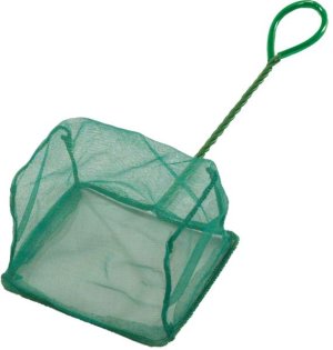 Jemná akváriová sieťka. Veľkosť: 10 x 7,5 cm, dĺžka 25 cm.