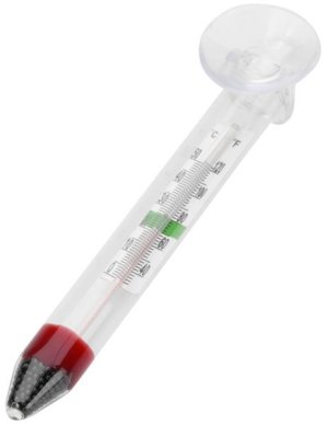 Sklenený teplomer s prísavkou pre ľahké uchytenie v akváriu.