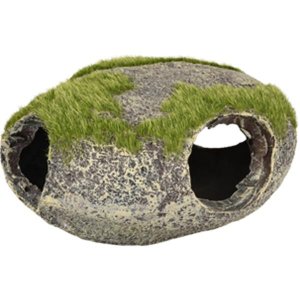 Dekorácia do akvária v podobe oblého kameňa, ktorý je porastený machom.
