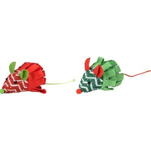 Plyšová hračka pre mačky v tvare myši je vyrobená z plyšu a tkaniny s vianočným vzorom.