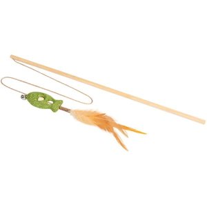 Prírodná hračka pre mačky v tvare prútu so závesnou hračkou.