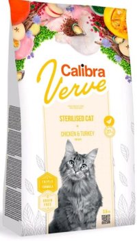 Calibra Cat Verve Sterilised Chicken & Turkey je kompletné krmivo bez obilnín s vysokým obsahom čerstvého mäsa – s kuraťom a morkou.