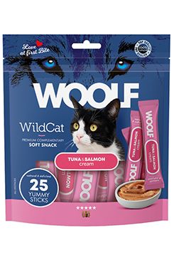 Doplnkové krmivo pre mačky, krémová maškrta s príchuťou tuniaka a lososa. Každé balenie obsahuje 25 lahodných tyčiniek s hmotnosťou 14 gramov.