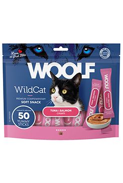 Doplnkové krmivo pre mačky, krémová maškrta s príchuťou tuniaka a lososa. Každé balenie obsahuje 50 lahodných tyčiniek s hmotnosťou 14 gramov.