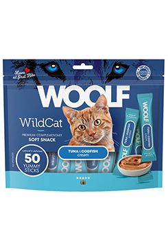 Doplnkové krmivo pre mačky, krémová maškrta s príchuťou tuniaka a tresky. Každé balenie obsahuje 50 lahodných tyčiniek s hmotnosťou 14 gramov.