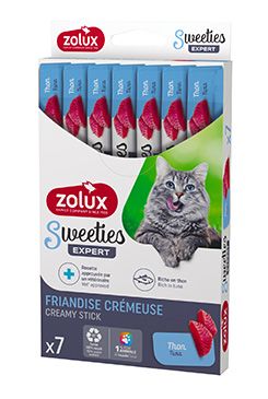 Krémová maškrta pre mačky s vysokým obsahom tuniakaVysoký obsah mäsa/rýb - maškrty Sweeties vyrobené z plátkov mäsa alebo rýb majú nízky obsah tuku a zaručujú príjem kvalitných bielkovínKvalitné ingrediencie - maškrty neobsahujú konzervanty, umelé arómy a pridaný cukor.