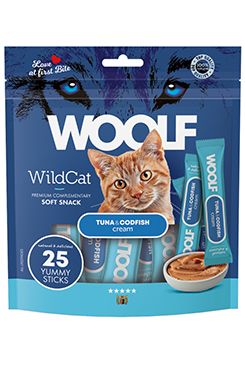 Doplnkové krmivo pre mačky, krémová maškrta s príchuťou tuniaka a tresky. Každé balenie obsahuje 25 lahodných tyčiniek s hmotnosťou 14 gramov.