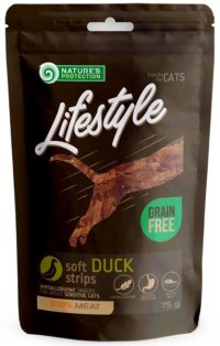 Doplnkové krmivo pre mačky Nature's Protection Lifestyle Cat Snack Soft Duck Strips - mäkké kačacie prúžky.