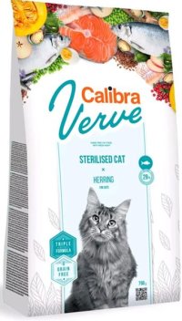 Calibra Cat Verve Sterilised Herring je kompletné krmivo bez obilnín s vysokým obsahom čerstvého rybieho mäsa.