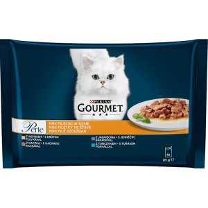 Kapsičky Gourmet Perle obsahujú chutné minifiletky v šťave pre dospelé mačky a ich každodenný pôžitok z jedla.